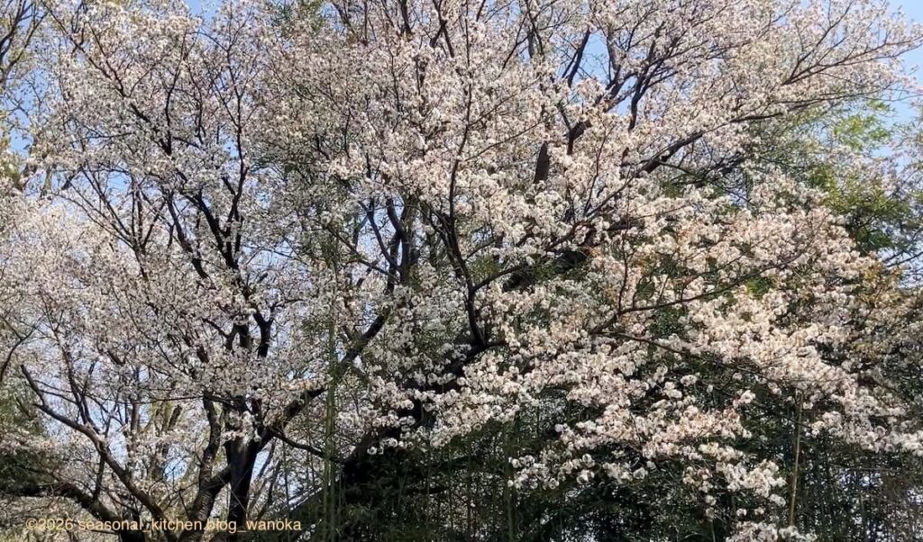 畑では今、土を耕しながら見上げると桜は満開🌸