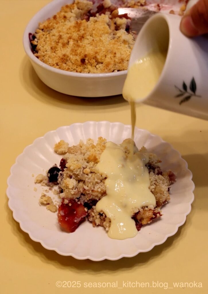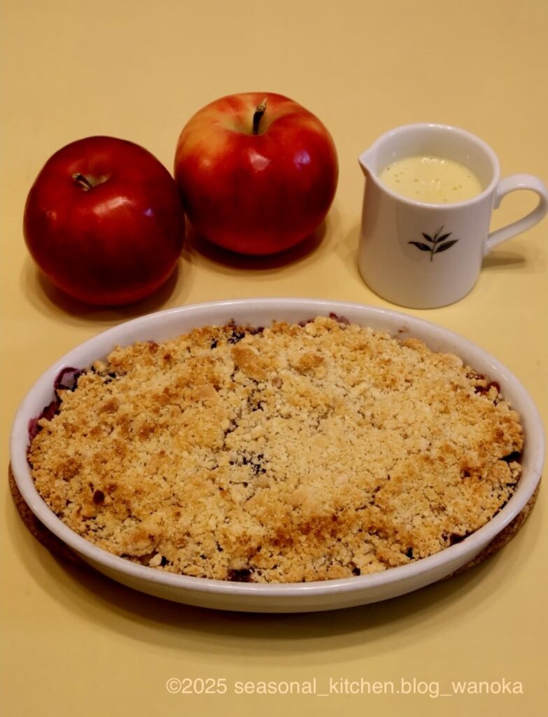 The very first time I tasted apple crumble, she poured a generous amount of warm custard sauce from a large pitcher over the crumble. I still remember that moment vividly—it was love at first bite.